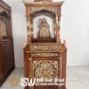 Dengan keterampilan tinggi para pengrajin profesional yang telah diakui secara global, setiap detail dari Mimbar Masjid Sumedang ini mencerminkan kesempurnaan dalam seni ukir tradisional yang anggun. Memancarkan suasana kemewahan dan ketenangan di setiap tempat ibadah, mimbar ini tidak hanya berperan sebagai lokasi untuk menyampaikan ceramah, tetapi juga sebagai sebuah karya seni yang menunjukkan keindahan dan spiritualitas. Produk ini dibuat dari kayu jati yang telah terbukti ketahanannya selama beberapa dekade. Proses produksinya menggunakan teknologi terkini dan diawasi secara cermat, mulai dari pemilihan kayu, teknik pemahatan ukir, hingga tahap finishing.