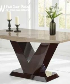 Valencio Brown V is a Granite Dining Table Model because the shape of its legs resembles the letter “V”. Granite is known for its unique and luxurious natural grain pattern formed from magma that slowly solidifies beneath the earth’s surface. This stone has a granular texture (coarse-grained) which consists mostly of minerals such as quartz and feldspar, as well as a little mica and other minerals. Each sheet has a different character so that the dining table looks exclusive and no two are exactly the same. Its natural shine when exposed to light makes the dining room feel more alive and glamorous luxury.