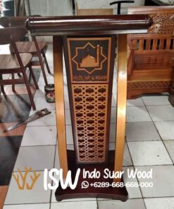 Podium Mimbar ini sangat pas untuk kalian yang sedang mencari mimbar dengan tampilan mewah dan modern. Dibuat Dengan bahan utama kayu jati yang dikenal karena kekuatan dan keindahannya, mimbar ini memberikan kombinasi sempurna antara gaya minimalis dan kualitas yang tak tertandingi. Podium Mimbar Masjid ini terbuat dari bahan Kayu jati yang tahan terhadap rayap dan cuaca ekstrim. Podium Mimbar ini juga sangat cocok digunakan dalam jangka waktu yang lama.