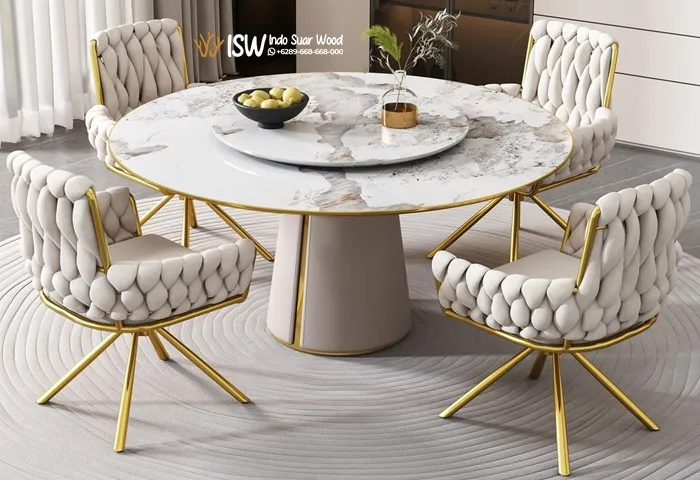 Set Meja Makan Marmer Bulat Modern