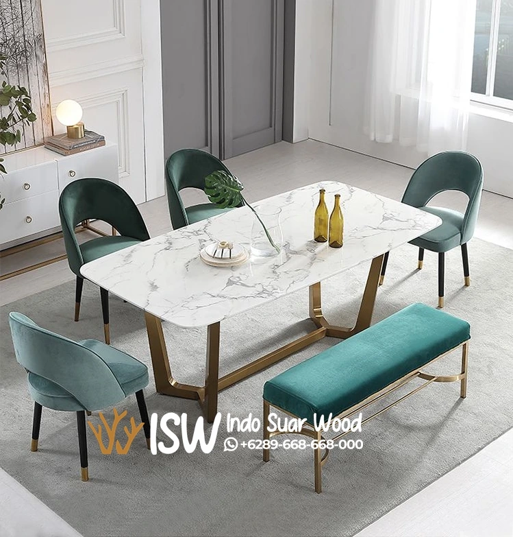 Tidak perlu jauh jauh membeli Set Meja Makan Marmer Putih bahan marmer putih atau yang dikenal dengan marmer cararra diatas tidak perlu lagi pergi ke eropa atau italia, Karena toko kami sebagai produsen atau pembuatnya langsung bisa custom model yang seperti inginkan. Marmer adalah salah satu jenis batu alam yang telah digunakan sejak ribuan tahun lalu dan masih menjadi simbol keindahan, kemewahan, serta keanggunan hingga saat ini. Batu ini terbentuk dari proses metamorfosis batu kapur yang mengalami suhu dan tekanan tinggi di dalam kerak bumi. Proses alami tersebut menghasilkan kristalisasi kalsit yang menjadikan marmer memiliki tekstur padat, pola serat unik, dan permukaan yang dapat dipoles hingga mengkilap sehingga mampu memberikan kesan mewah.