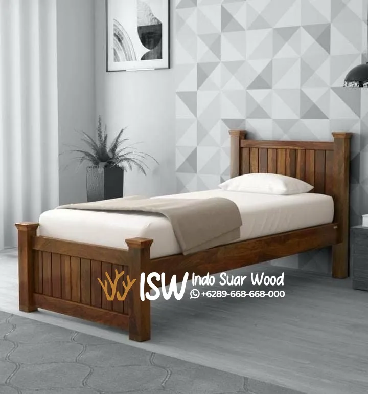 Tempat Tidur Kayu Untuk 1 Orang adalah jenis ranjang yang hanya bisa dipakai oleh satu orang. Ukurannya biasanya standar, sekitar 90 cm x 200 cm atau 100 cm x 200 cm, sehingga cocok untuk anak-anak, remaja, atau orang dewasa yang tinggal di kamar yang tidak terlalu luas.