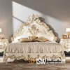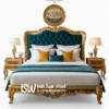 Tidak hanya proses finihsing saja yang telihat mewah sebab menggunakan warna gold. namun Bagian sandaran (headboard) sering kali menjadi pusat perhatian. Sandaran ini biasanya dilapisi dengan busa tebal dan kain beludru atau kulit sintetis mewah, dihiasi dengan jahitan kancing tufted atau bordiran halus, menambah kenyamanan sekaligus memperkuat aura istana. Beberapa model juga memiliki detail ukiran berlapis emas pada bingkai sandaran dan kaki tempat tidur yang mempertegas kesan megah jadi tunggu apalagi segara hubungi nomer admin yang sudah disediakan.